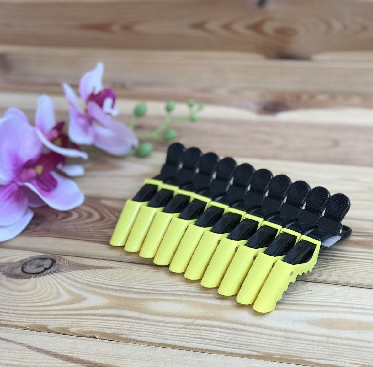 Затискачі для волосся пластмасові "крокодил", жовті (Набір 10 шт.)