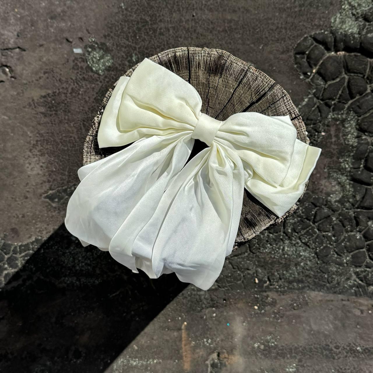 Заколка-автомат для волосся бант довгий молочний зі стрічками